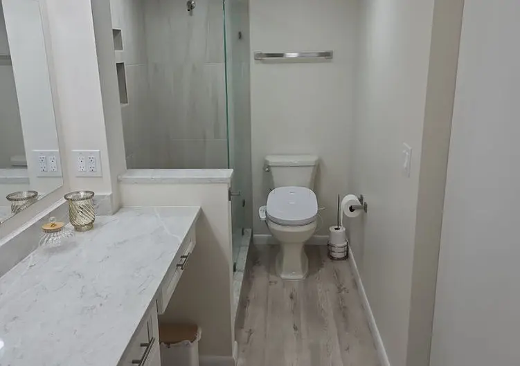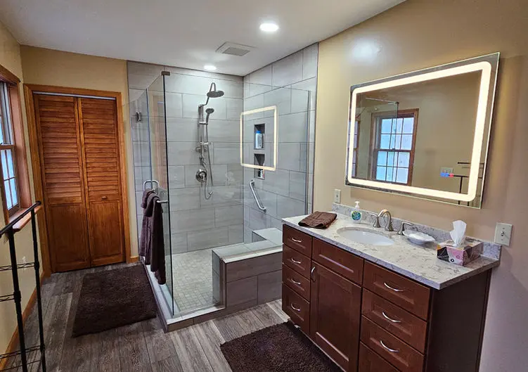 “CNY just completed a remodel of my primary bathroom. This included outstanding design service, a complete demolition of the existing bathroom, then, the re-build. The large tub is gone and in its place are tall cabinets. Plenty of space for sheets and towels. The vanity is now larger than the old one since the tub is no longer encroaching on the space. The shower no longer has a curb, so no stepping over a tripping hazard. The people at CNY are very professional and really know their jobs. I highly recommend CNY Home Improvements. In addition to the bathroom, they remodeled my closets. Now I have drawers, shoe shelves, and much more usable hanging space. I love my new bathroom and closets!”